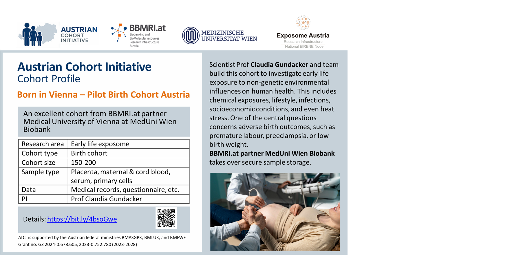 Die Wissenschafterin Claudia Gundacker und ihr Team an der MedUni Wien bauen diese Kohorte auf, um die Auswirkungen von Umwelteinflüssen in der frühen Lebensphase zu untersuchen. Dazu zählen chemische Belastungen, Lebensstilfaktoren, sozioökonomische Bedingungen, Infektionen sowie auch Hitzestress. Die MedUni Wien Biobank, ein Partner von BBMRI.at, übernimmt dabei die sichere Lagerung der Proben.