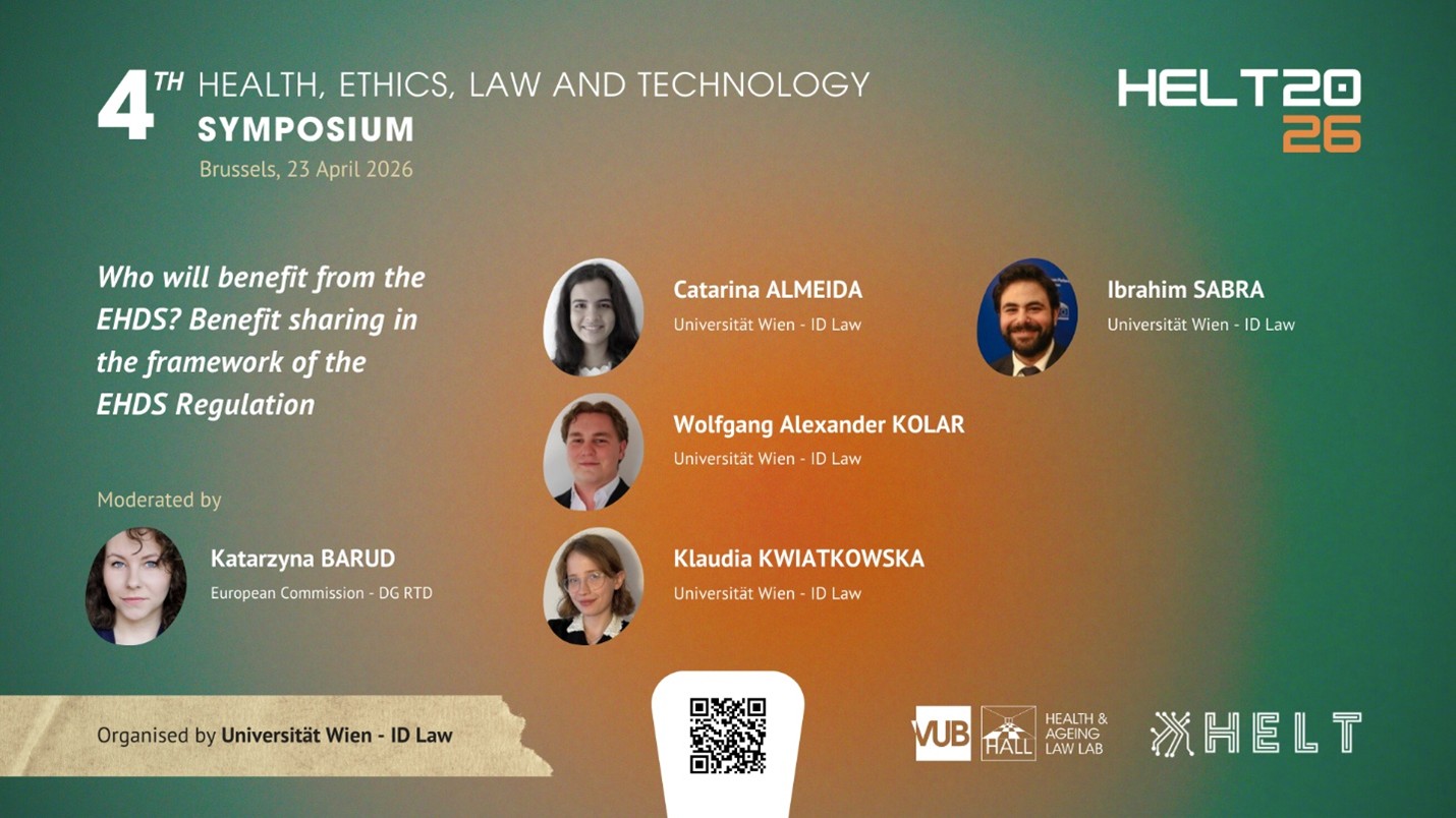 The 4th edition of the Health, Ethics, Law, and Technology Symposium (HELT 2026 Symposium) will be held on the topic of the EHDS Regulation: “EHDS Regulation, a Year On: From Vision to Reality”. This year’s agenda includes keynotes from experts affiliated with the European Commission, as well as various workshops under the theme of the symposium. The event is hosted by the Health & Ageing Law Lab (HALL) of Vrije Universiteit Brussel on 23 April 2026.
